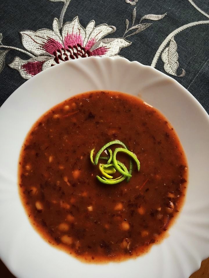 Do polévky přidáme fazole v tomatě, zbytek cibulky, osolíme, opepříme a můžeme podávat.